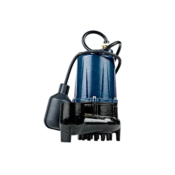 Automatic submersible sump pump, heavy-duty cast iron construction including impeller, clog-resistant design, 1-1/2" NPT discharge, 115V, 15' cord, capable of passing 3/8" diameter solids, tethered float.